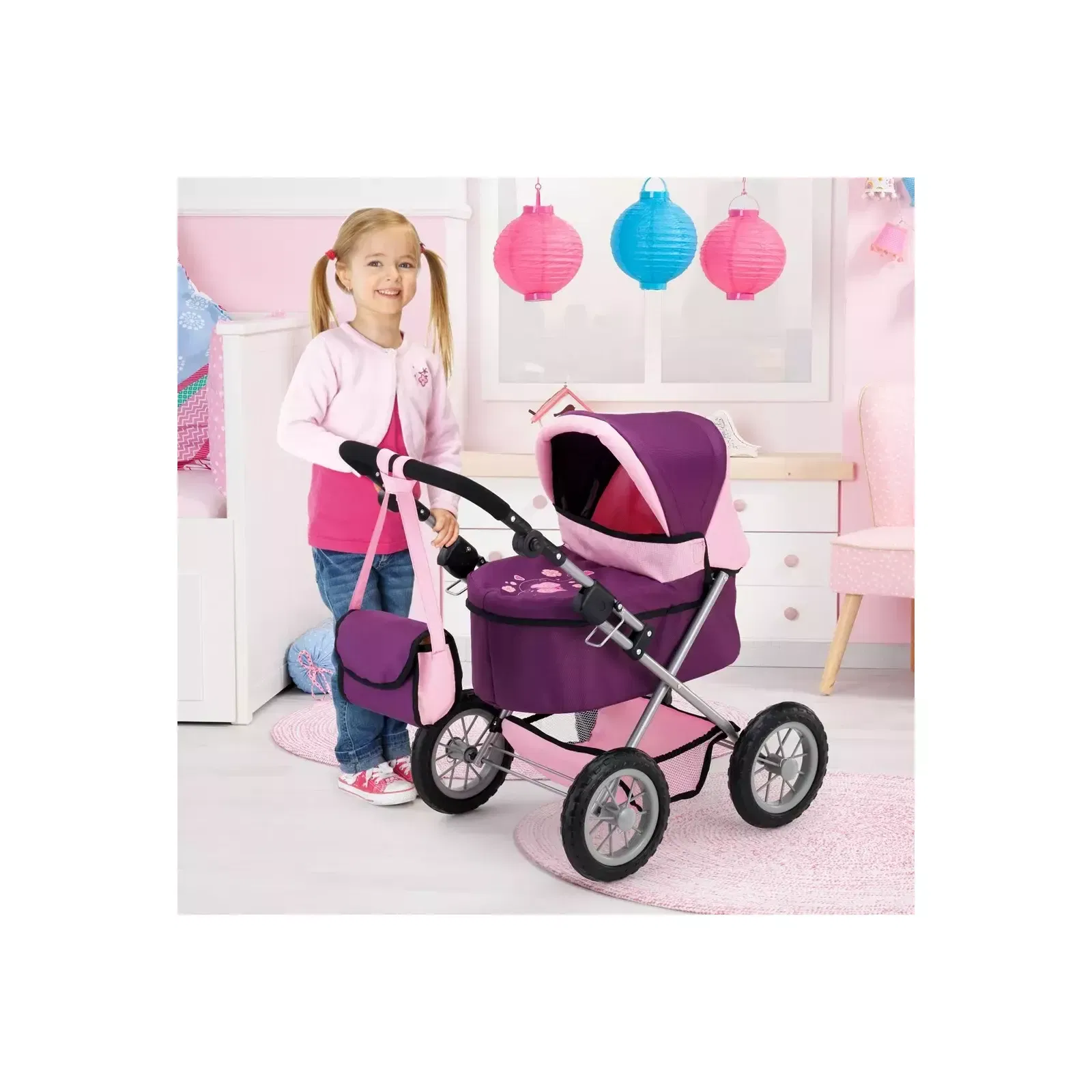 Bayer Design dúkkuvagn með svuntu og skiptitösku – Trendy -Fjólublár