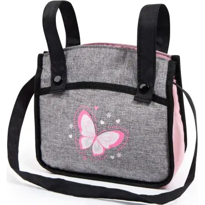 Falleg samlit taska með stillanlegri ól og góður innkaupapoki undir vagninum.