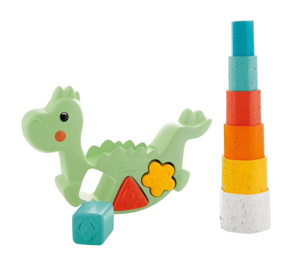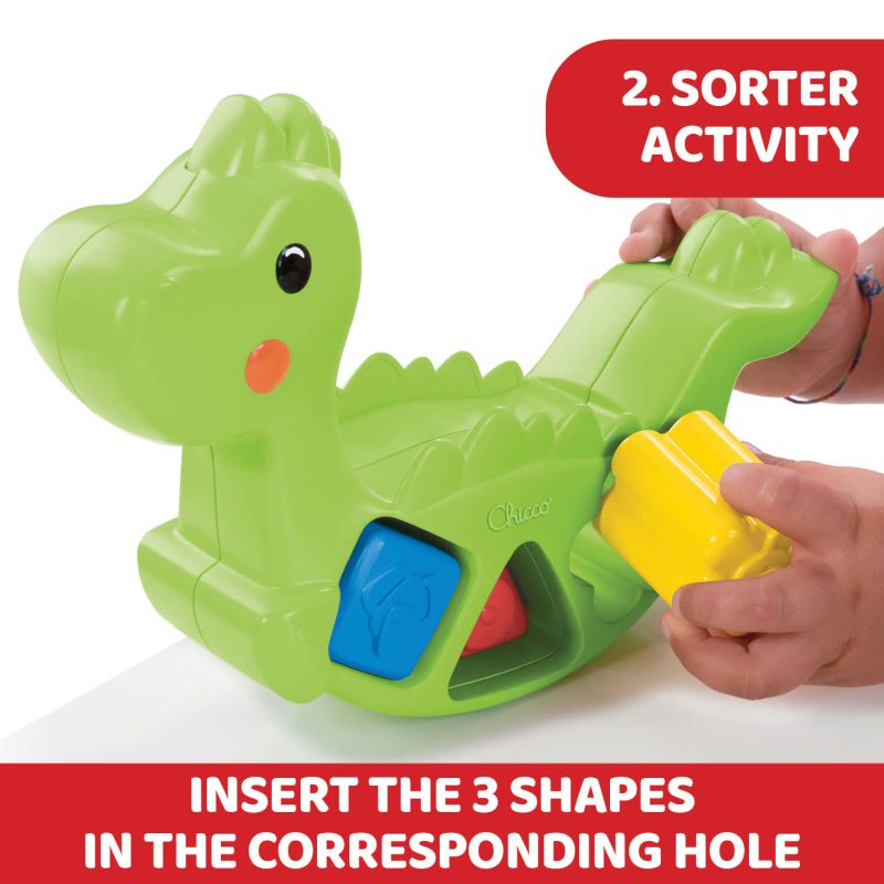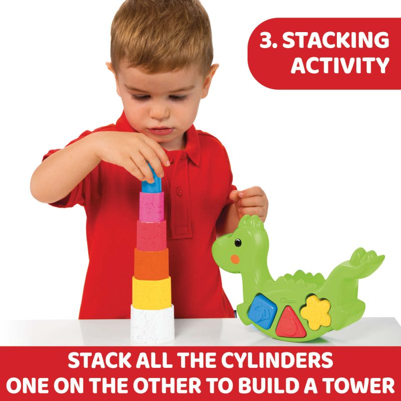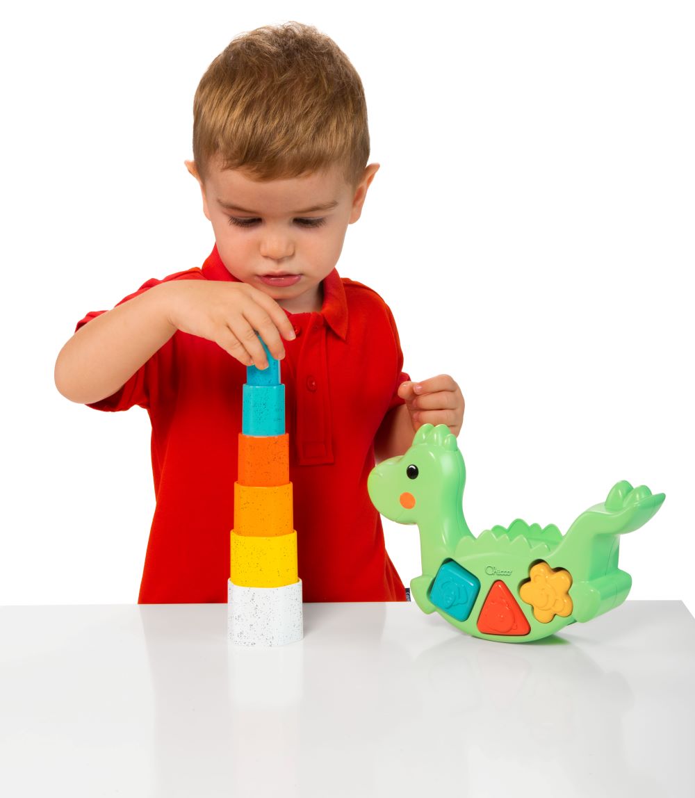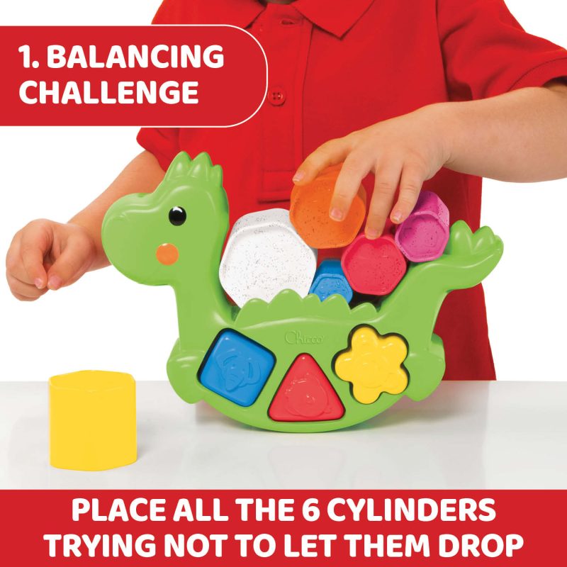 Chicco 2in1 Risaeðla með 3 formum og 6 tunnum.