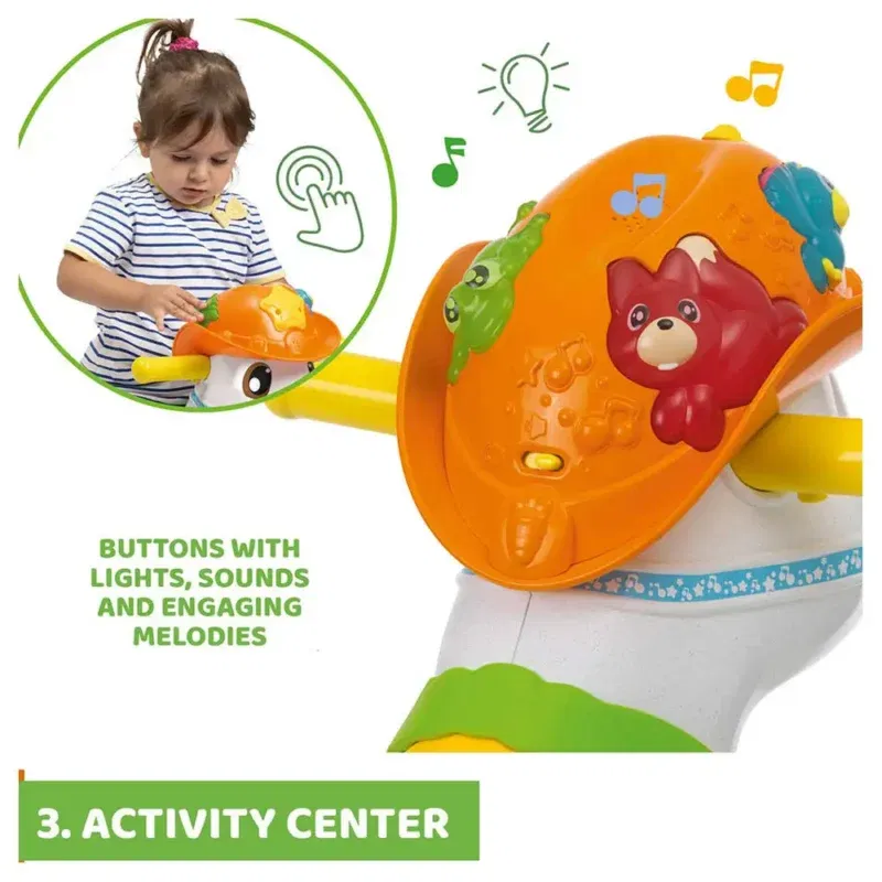 Skemmtilegur rugguhestur með hljóðum sem hægt er að breyta í sparkhjól.