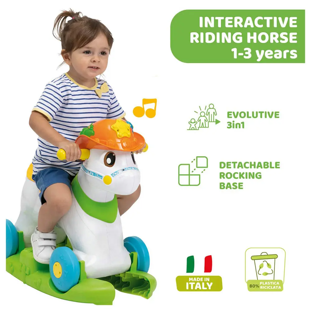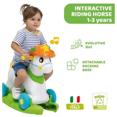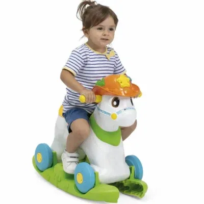 Skemmtilegur rugguhestur með hljóðum sem hægt er að breyta í sparkhjól.