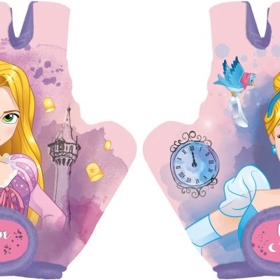 Flottar Prinsessu grifflur. Hjólahanskar úr endingargóðum efnum með litríku prenti, skreyttir persónum úr uppáhalds Disney teiknimyndum.