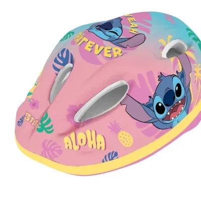 Hjálmur gerður úr PVC plasti að utan og skreyttur með Stitch.