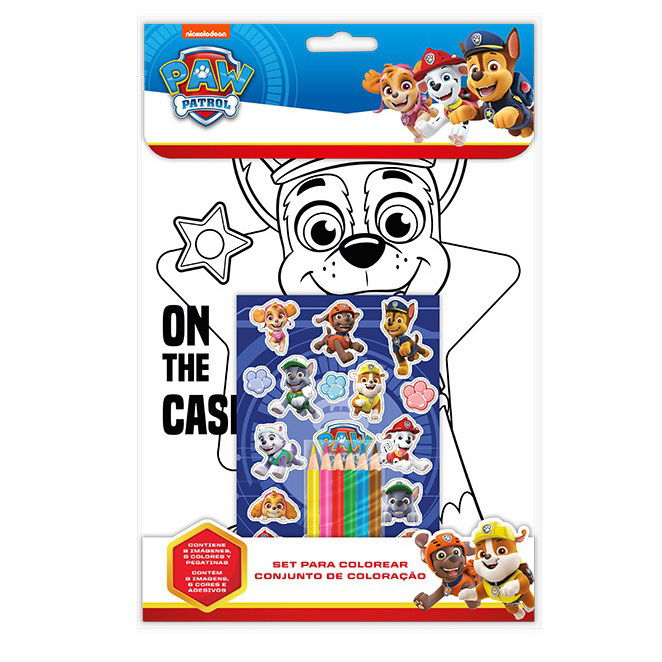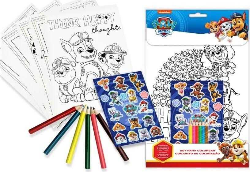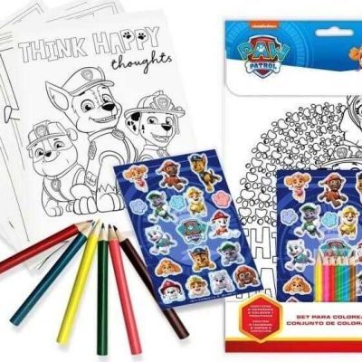 Átta A4 Hvolpasveit myndir til að lita, límmiðar og 6 trélitir