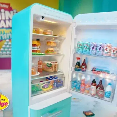 Með Mini Brands Fill the Fridge ísskápnum getur þú fyllt á ískápinn þinn  hvenær sem er!