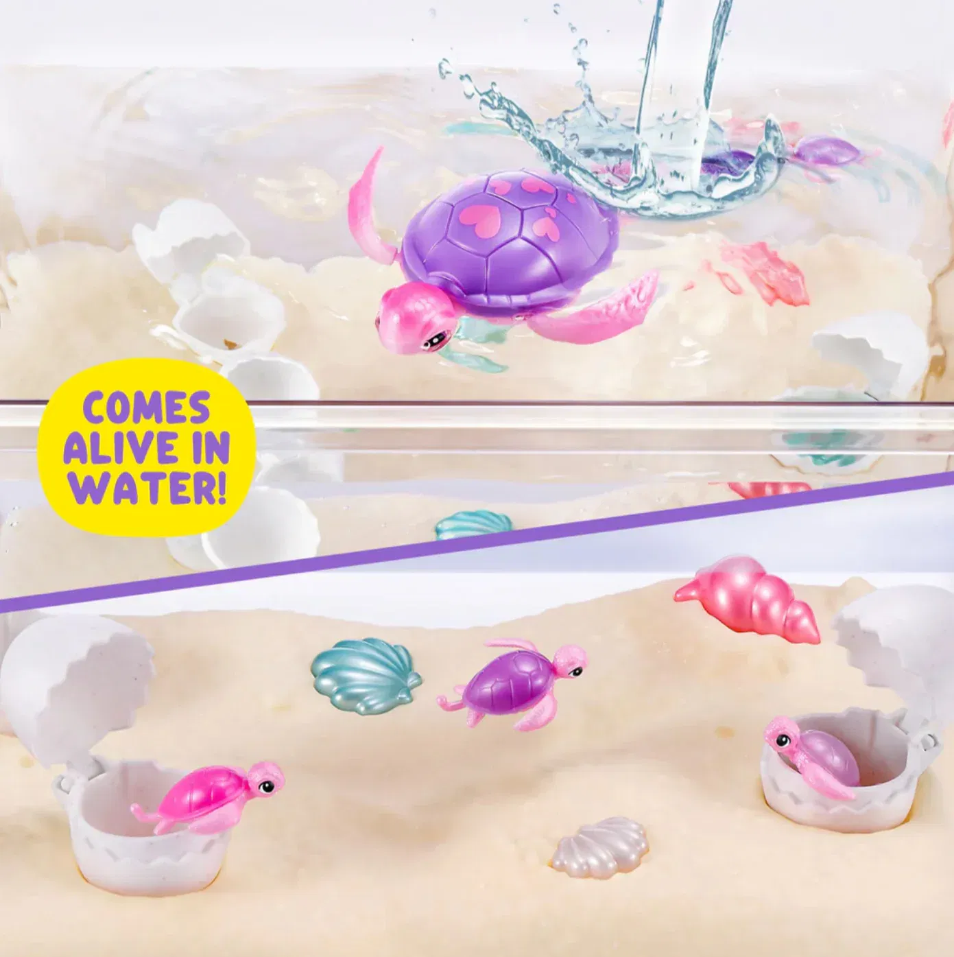 Þegar mömmu skjaldbakan er ekki að hugsa um ungana sína, lifnar hún við og syndir um alveg eins og alvöru skjaldbaka!