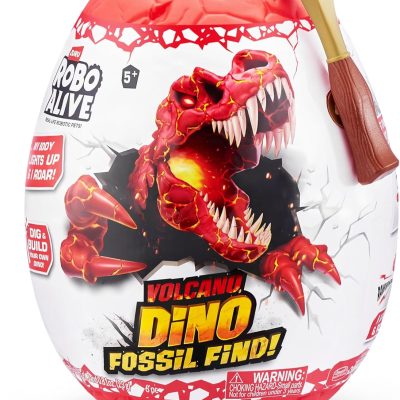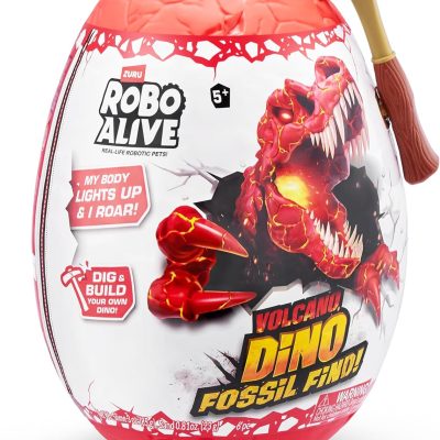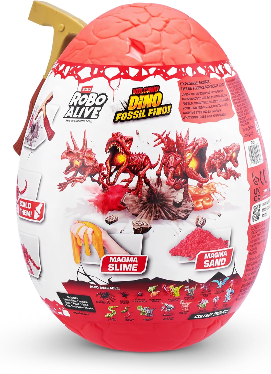 Robo Alive Volcano Dino Fossil Egg með hamri