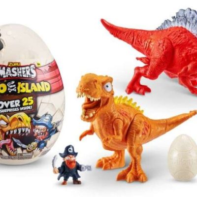 Opnaðu eggið og þar eru 25 óvæntir hlutir eins og slím, sandleir og froðuleir og inn í þeim finnur þú hluta af risaeðlunni. Egg með litlum fígúrum og sjórængi fylgja