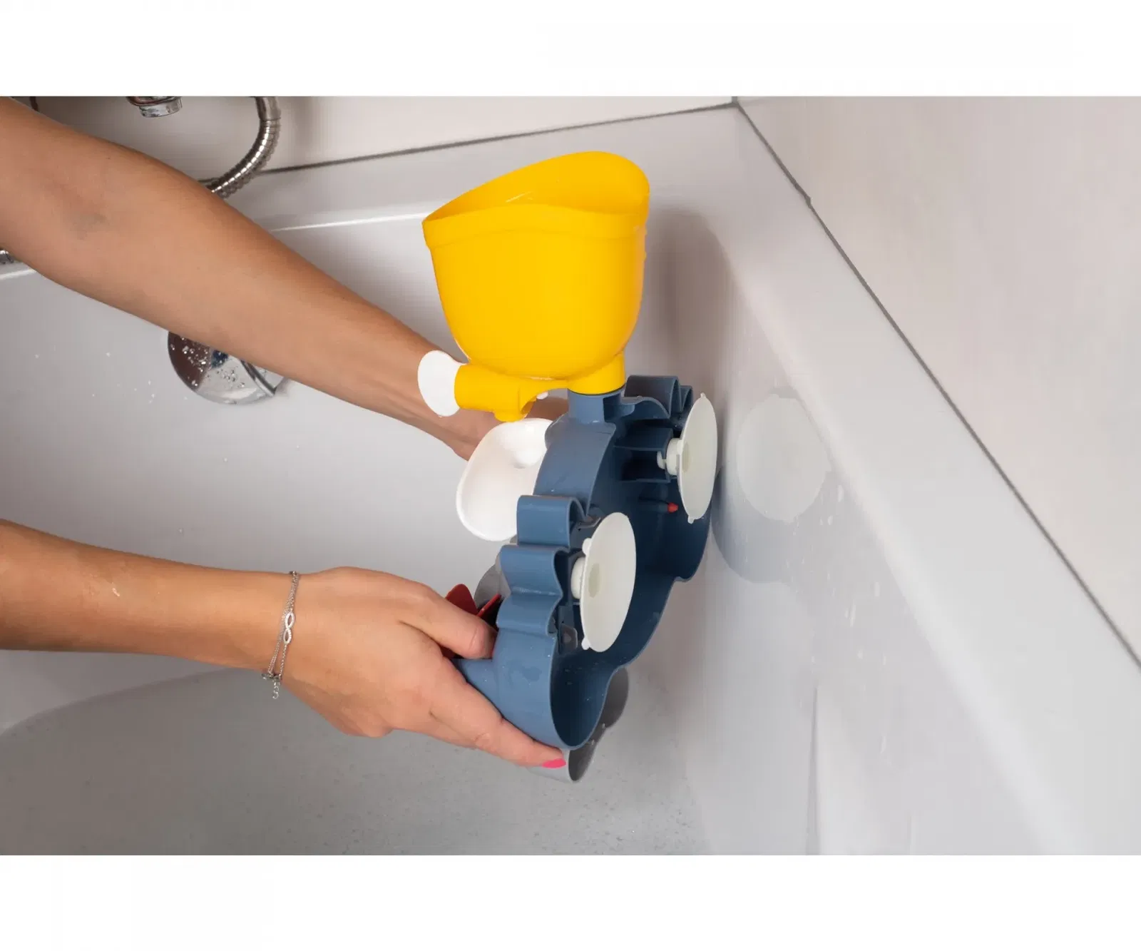 Skemmtilegt baðleikfang með sogskálum svo það festist á baðkarið eða sturtuvegginn.