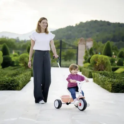 Smoby Bleikt Þríhjól með skúffu og foreldrastöng