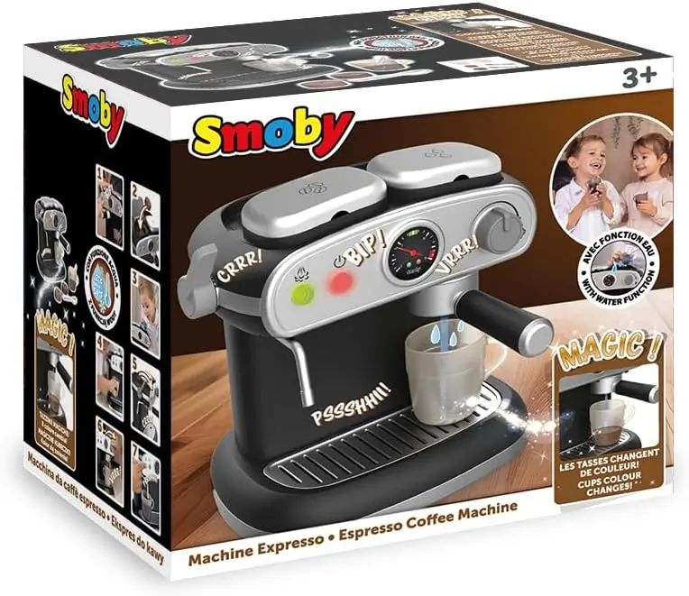 Þessi kaffivél býður upp á hlutverkaleik sem hjálpar börnum að þroska sköpunargáfu sína og endurskapa daglegar athafnir fullorðinna.