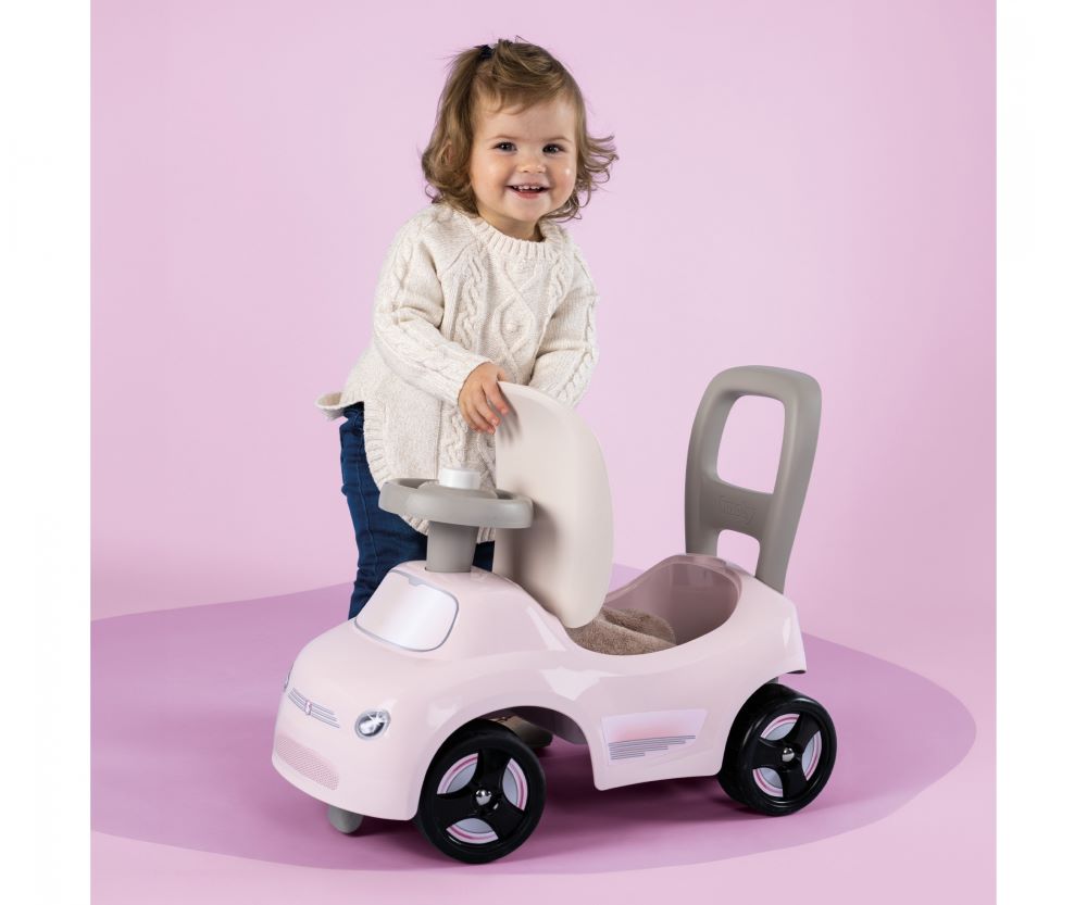 Fallegur bleikur sparkbíll með geymslu undir sæti.