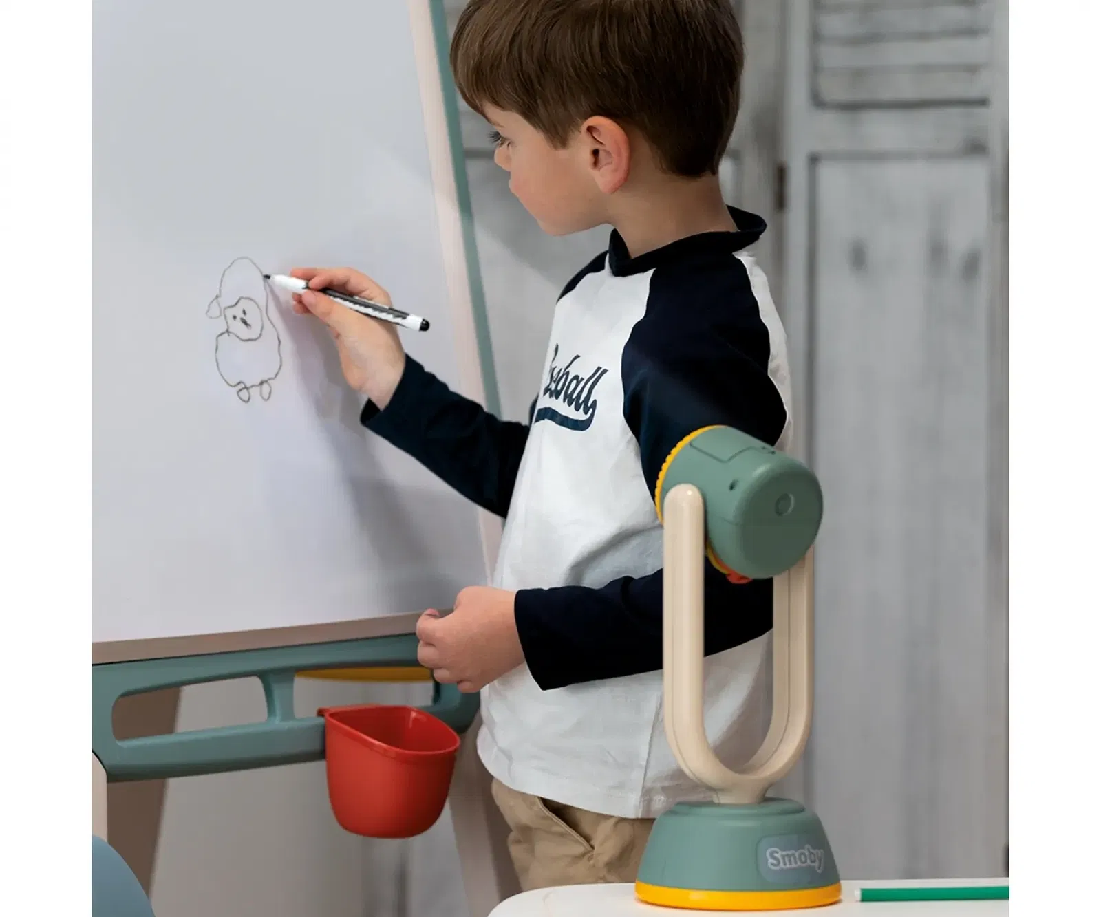 Láttu litlu listamennina njóta þess að skapa með Smoby teiknimyndvarpanum! Þetta skemmtilega og einfalda leikfang hjálpar börnum að teikna sínar eigin myndir með hjálp ljóss og mynsturvarpa.