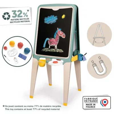 Með tveimur mismunandi hliðum – krítartöflu og hvítri segultöflu – býður taflan upp á fjölmörg tækifæri til sköpunar og náms.