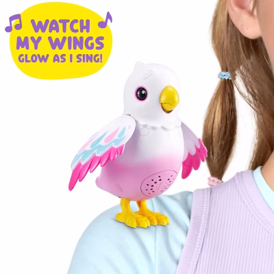 Notaðu töfrasprotann og þá vaknar Polly til lífsins – hún flautar 4 mismunandi lög, hreyfir sig og hermir eftir því sem þú segir.