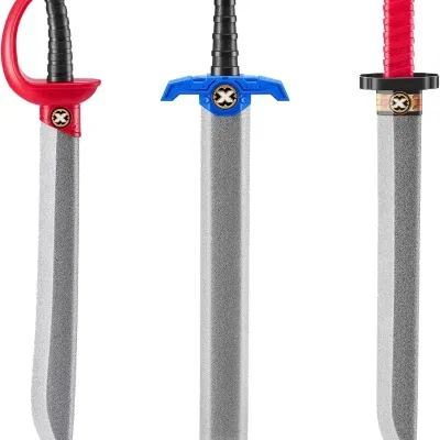 Sverðin eru létt, handfangið úr sterku plasti en sverðið sjálft úr svampi þannig ekki vont að fá það í sig þegar verið er að berjast!