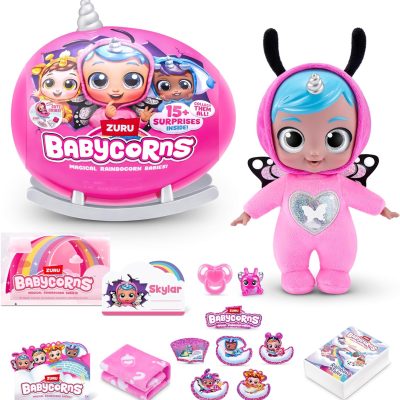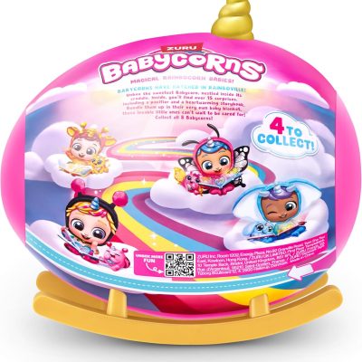 Fullt af spennandi hlutum inni í egginu t.d snuð, lítið lukkudýr, teppi, límiðar og lítil bók.