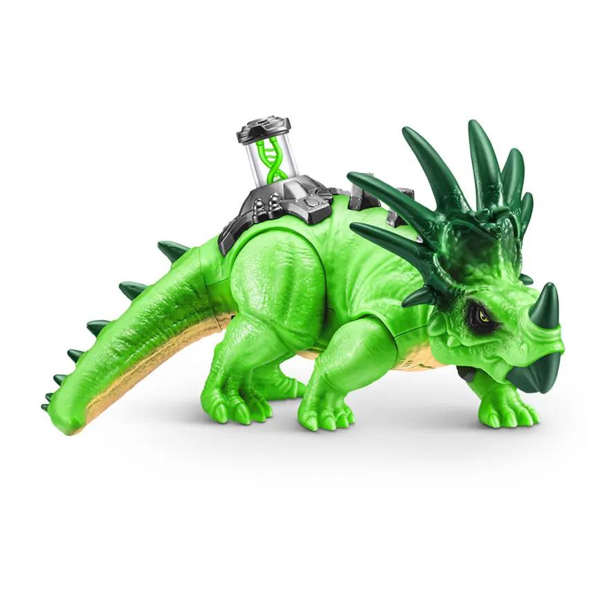 Risaeðlan kemur í þremur litum, rauð, græn og blá.