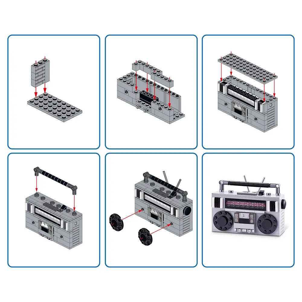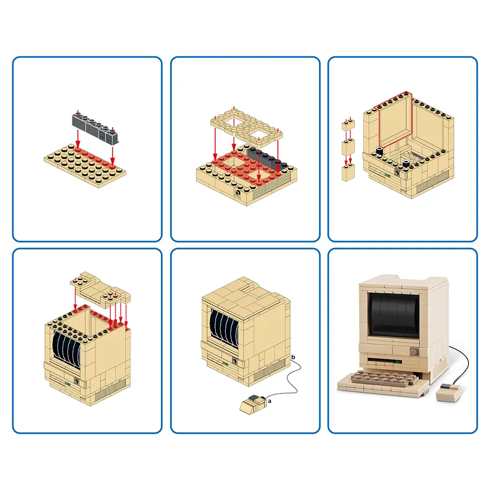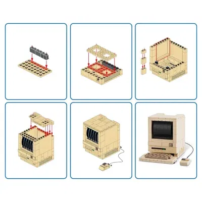 Hver kúla inniheldur leiðbeiningar og kubba fyrir einn retro hluti