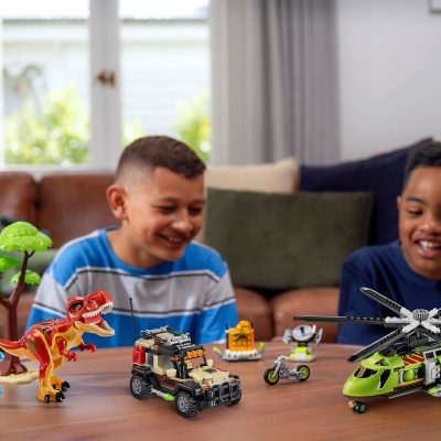 2 hreyfanlegar risaeðlur, þyrla,safari jeppi, 3 kallar, mótorhjól og fleiri aukahlutir sem þarf í skemmtilegt risaeðluævintýri
