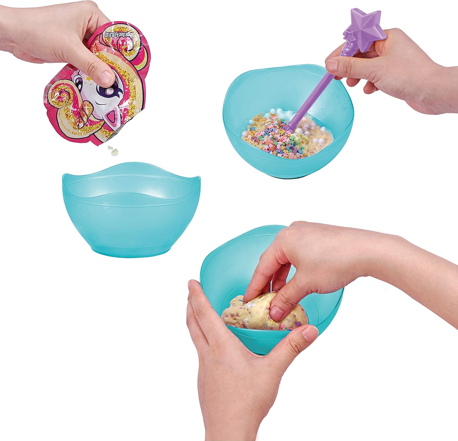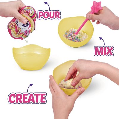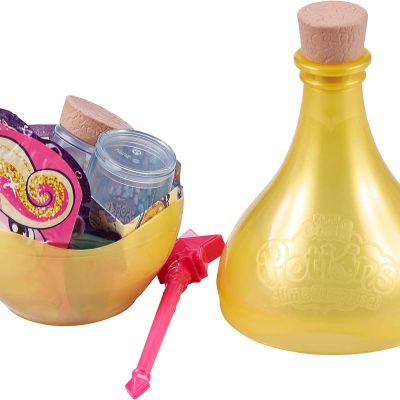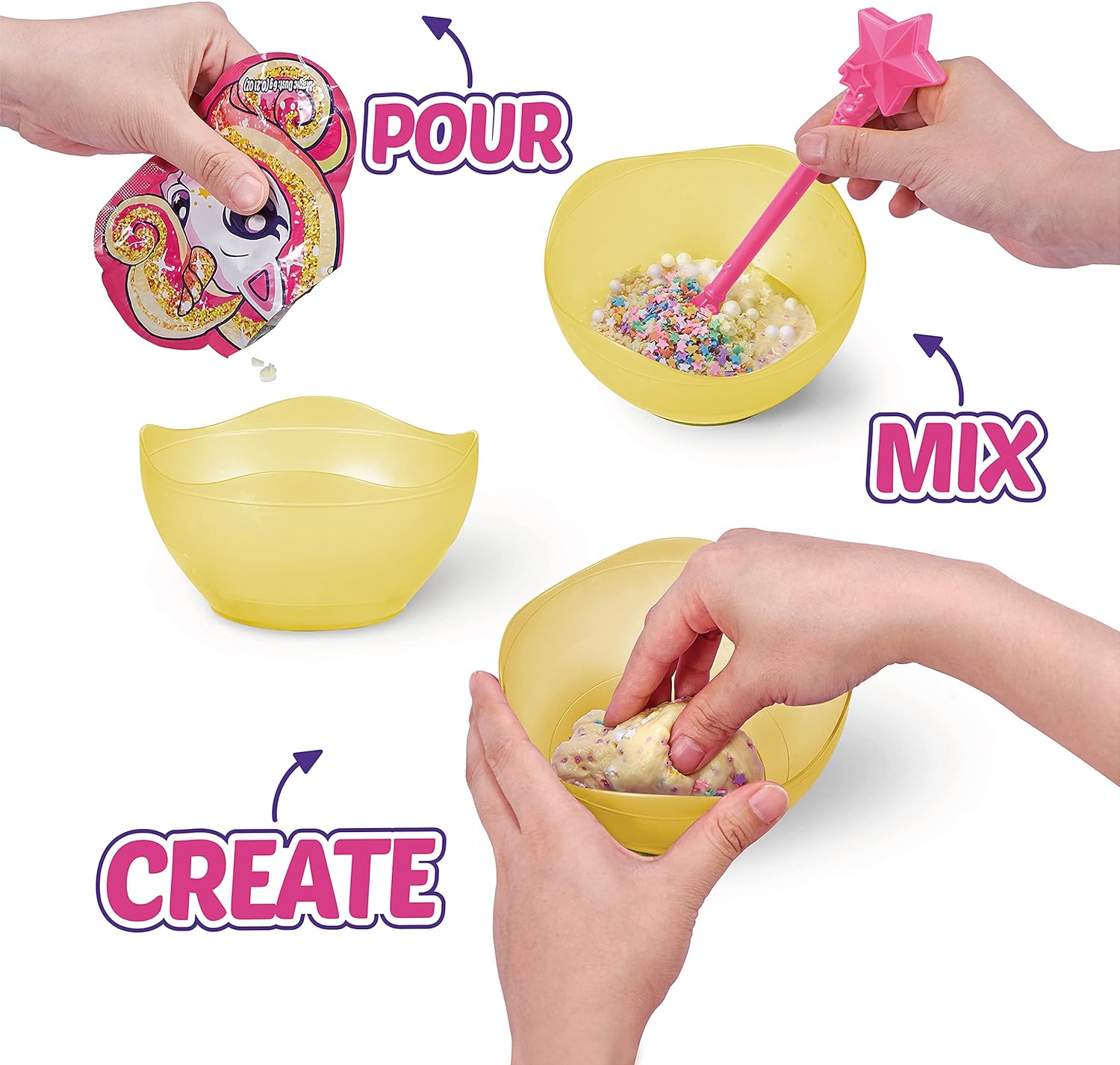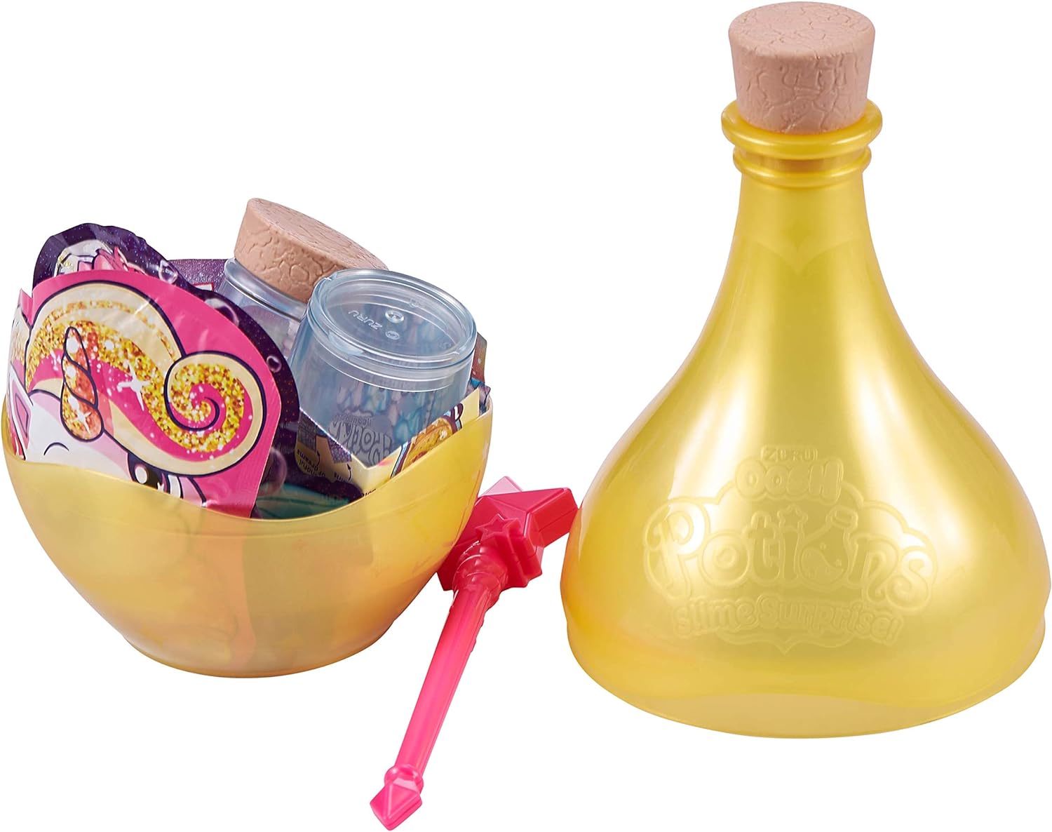 4 mismunandi flöskur: Gul, græn, fjólublá og bleik í boði allar með mismunandi hlutum inn í til að búa til sitt eigið slím eftir einfaldri uppskrift.