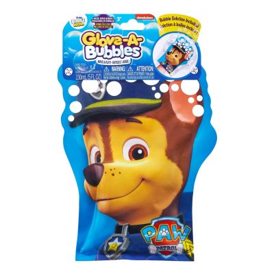 Settu sápukúluvatnið í hanskann og hreyfðu hendina og sápukúlurnar þeytast um allt.
