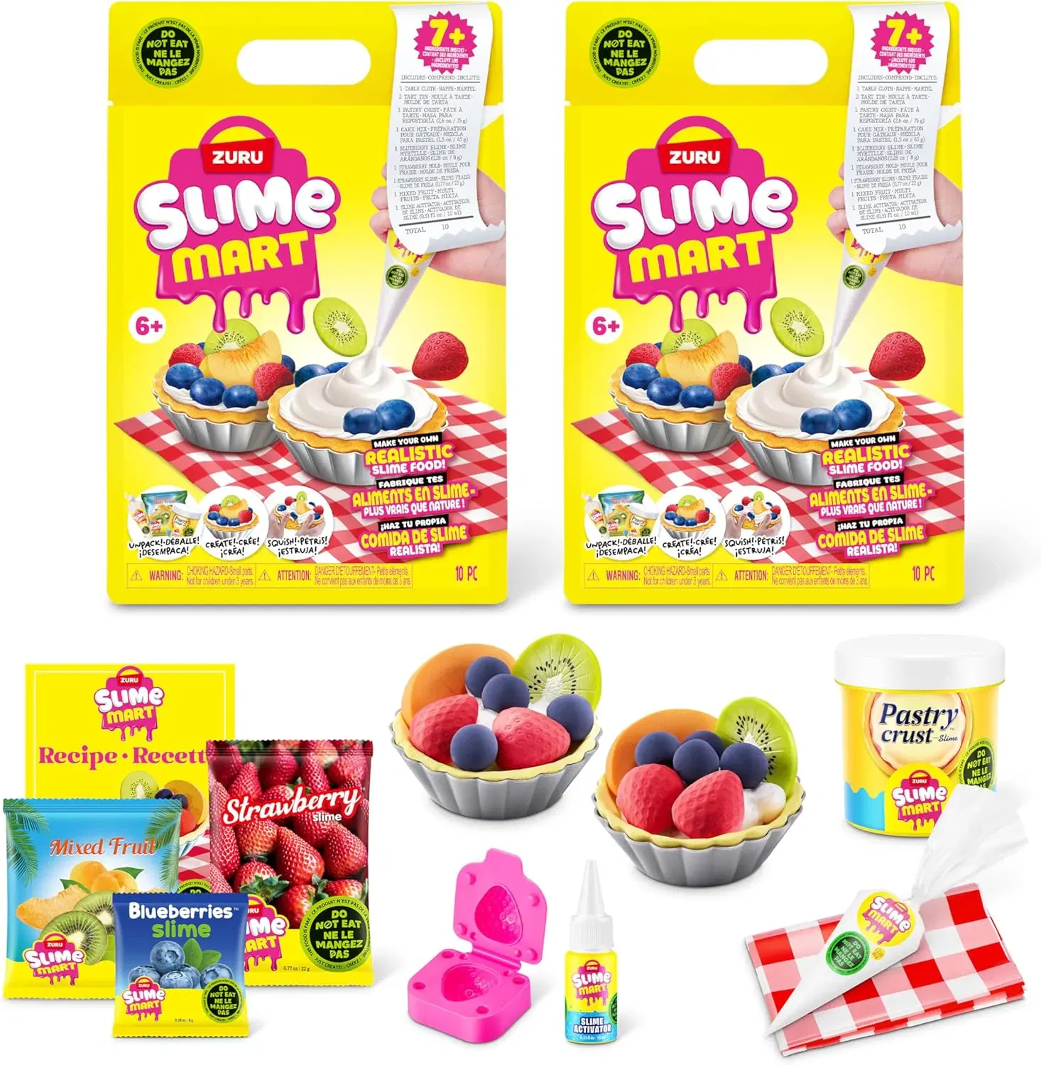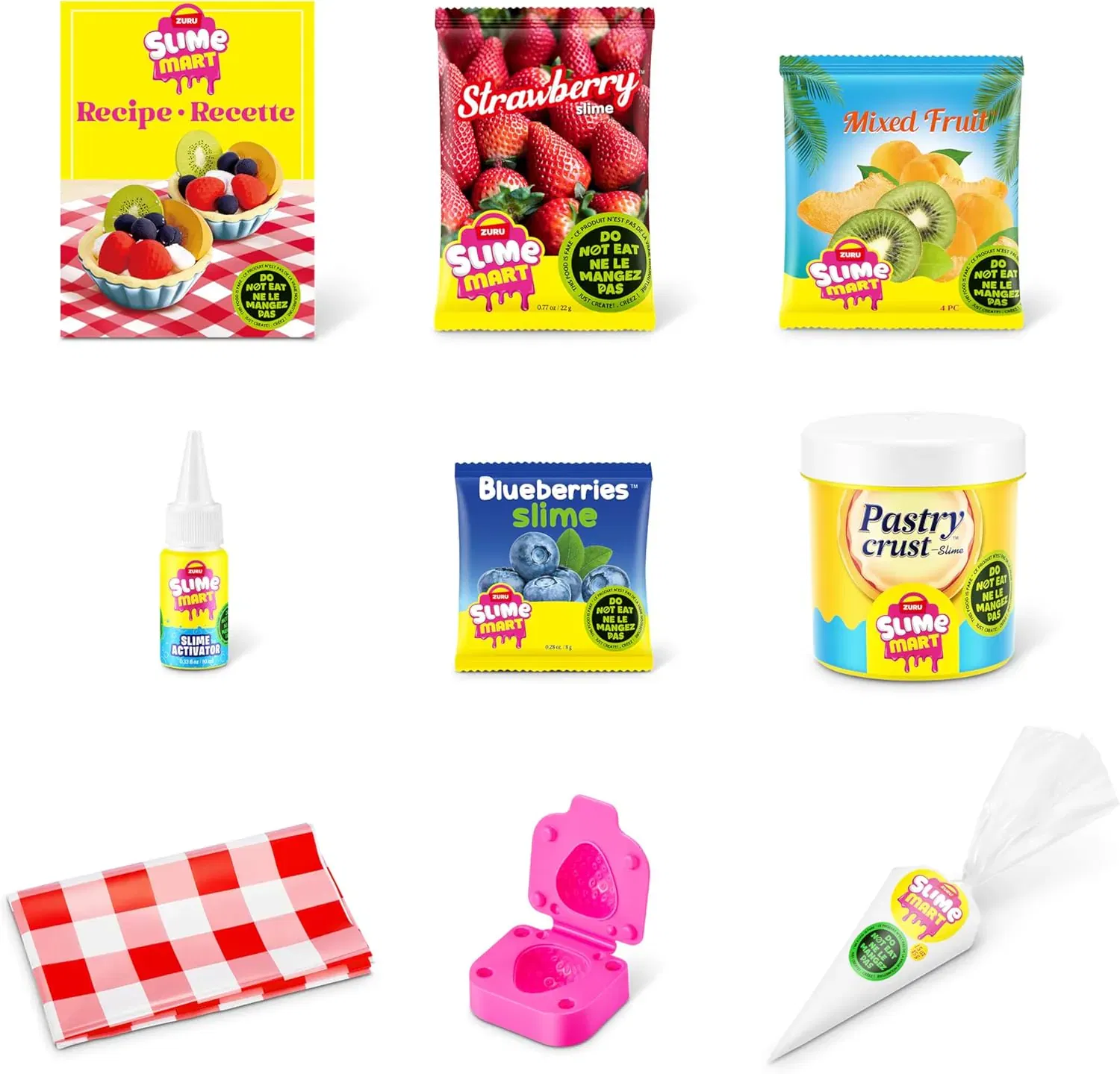 Inn í pokanum er allt sem þú þarft til að gera alvöru slím ávextatertu með auðveldum leiðbeiningum.