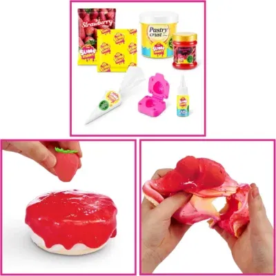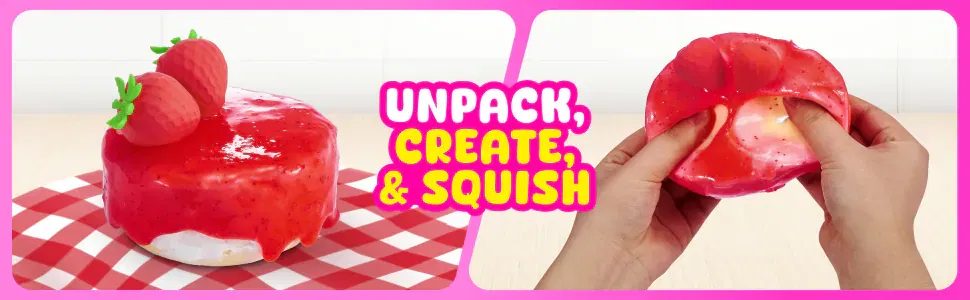 Inn í pokanum er allt sem þú þarft til að gera alvöru slím jarðaberjaostaköku með auðveldum leiðbeiningum.
